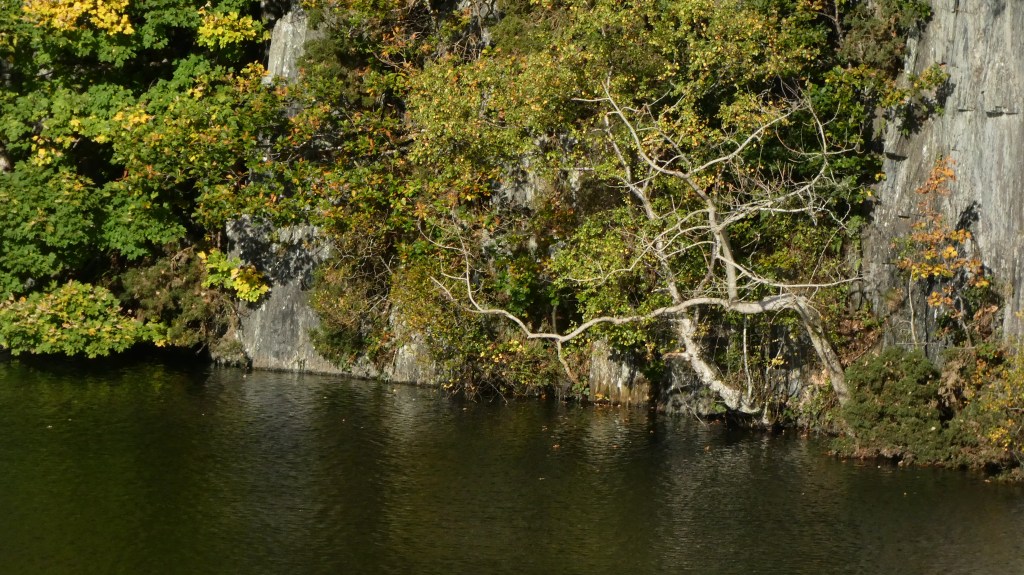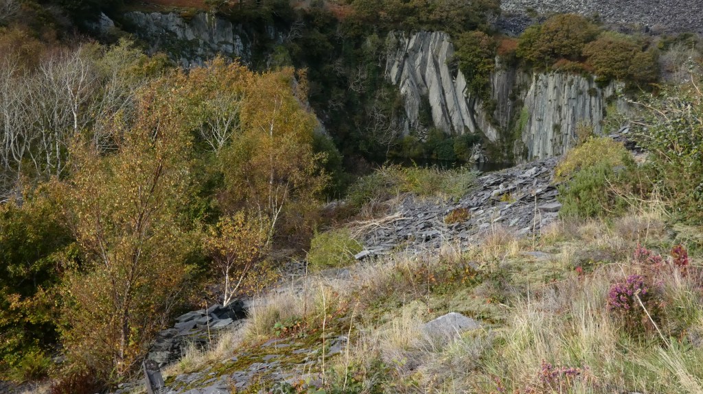 The Welsh slate trails lead you into an almost bizarre landscape where the green of the hills is broken up by the harsh greyness of the slate scattered randomly in huge slag heaps of slate across the hillside. Quarries have often become lakes and nature has regained a foothold albeit seemingly tentatively.
